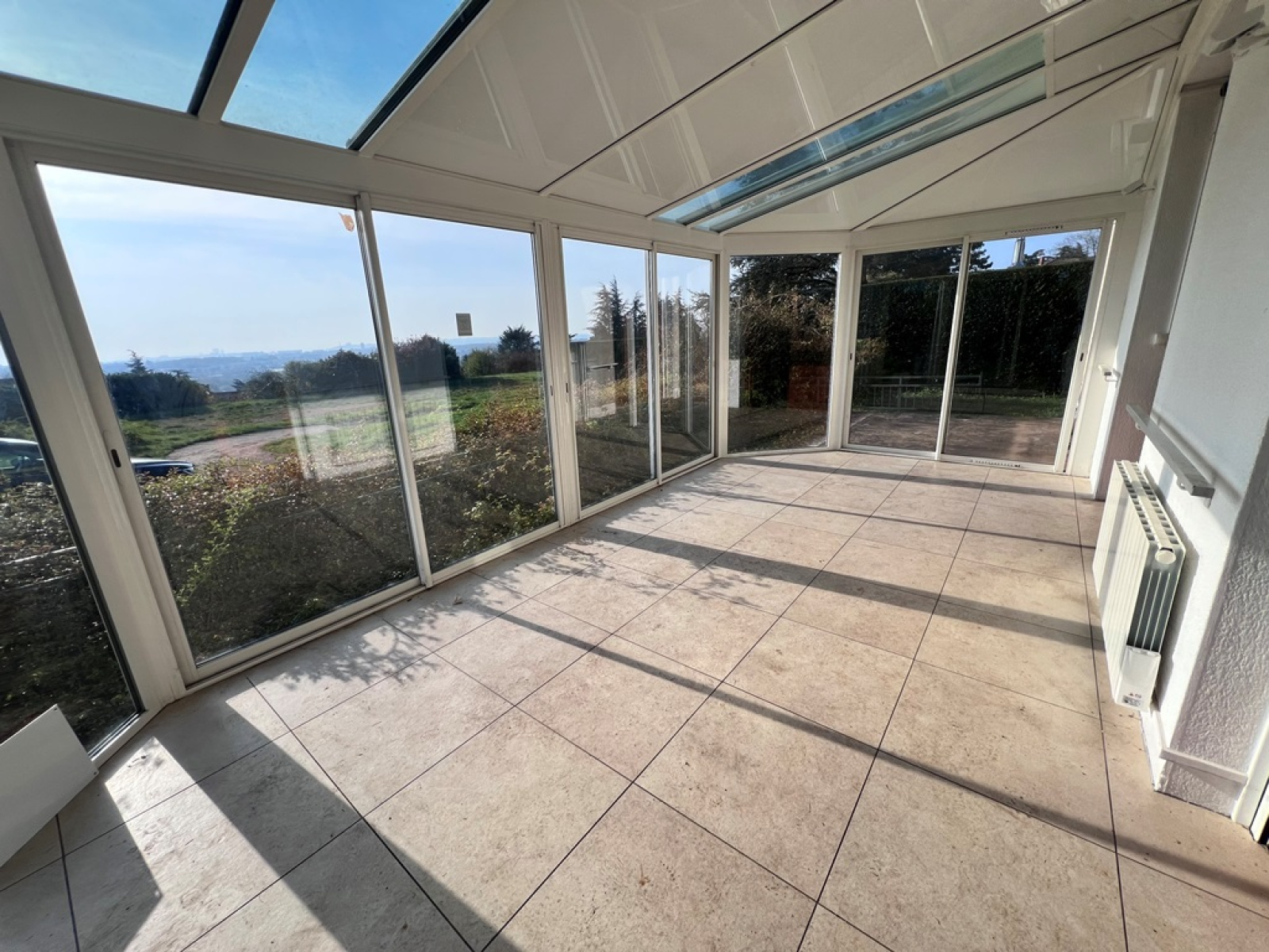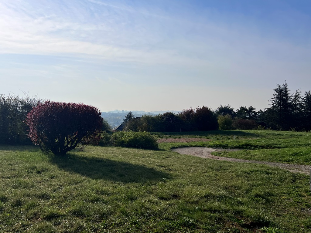 À l’extérieur, le terrain, en position dominante, offre une vue dégagée exceptionnelle sur Lyon et ses environs, dans un environnement calme et privilégié.
