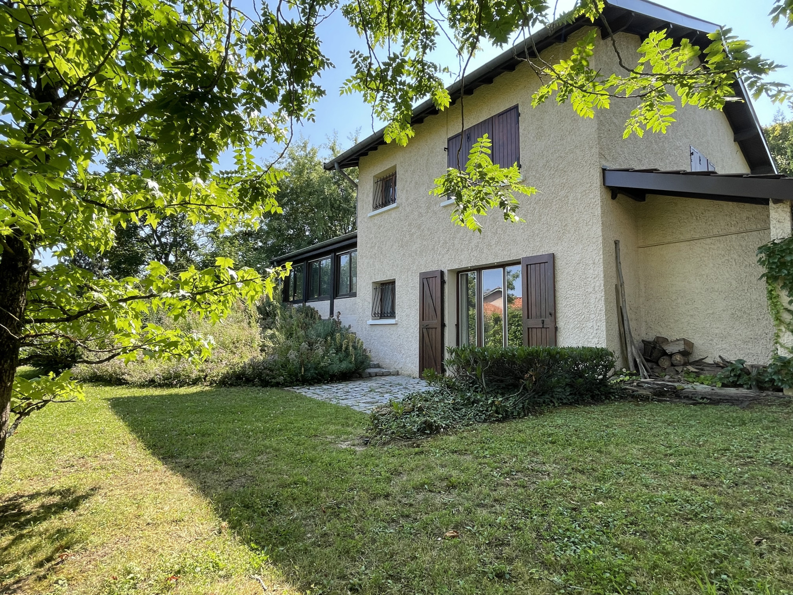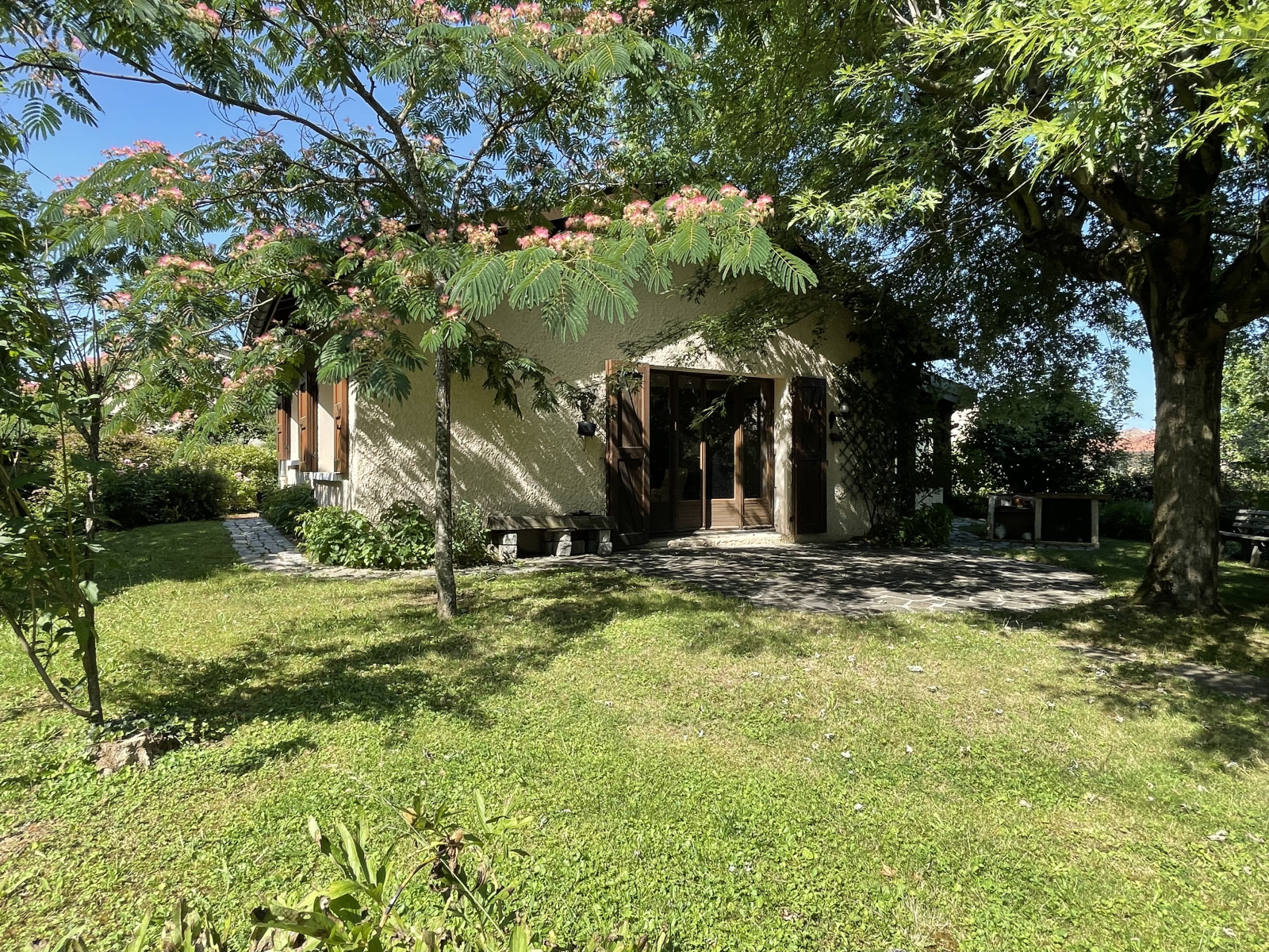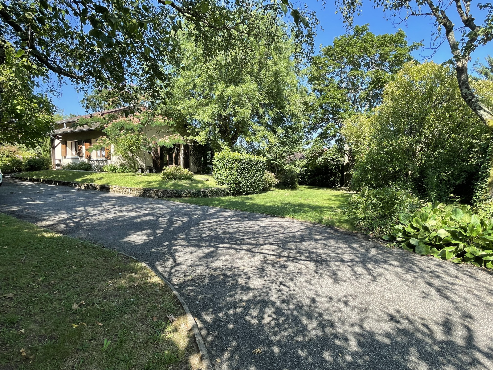 Implantée sur un terrain clos et arboré de 1 395m2, cette propriété bénéficie d'un aménagement paysager soigné, offrant un cadre verdoyant pour profiter pleinement de l'extérieur.