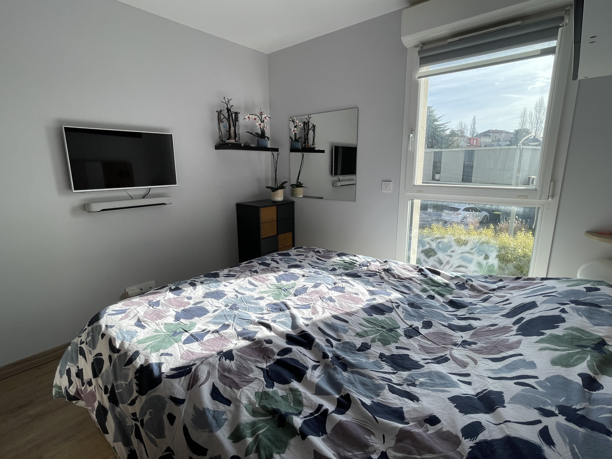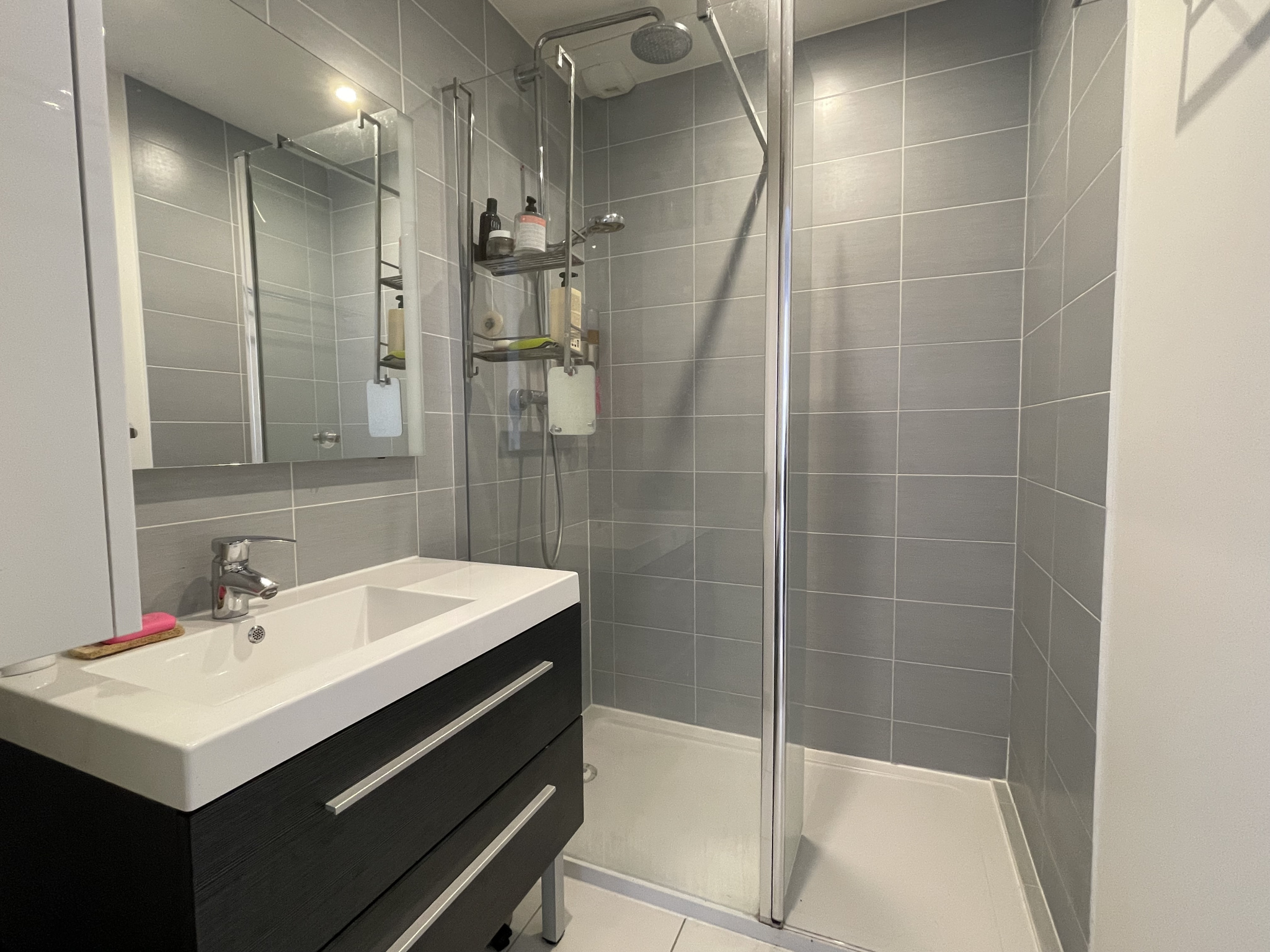 La cuisine ouverte, entièrement aménagée et équipée, complète harmonieusement l’espace de vie de 50m².