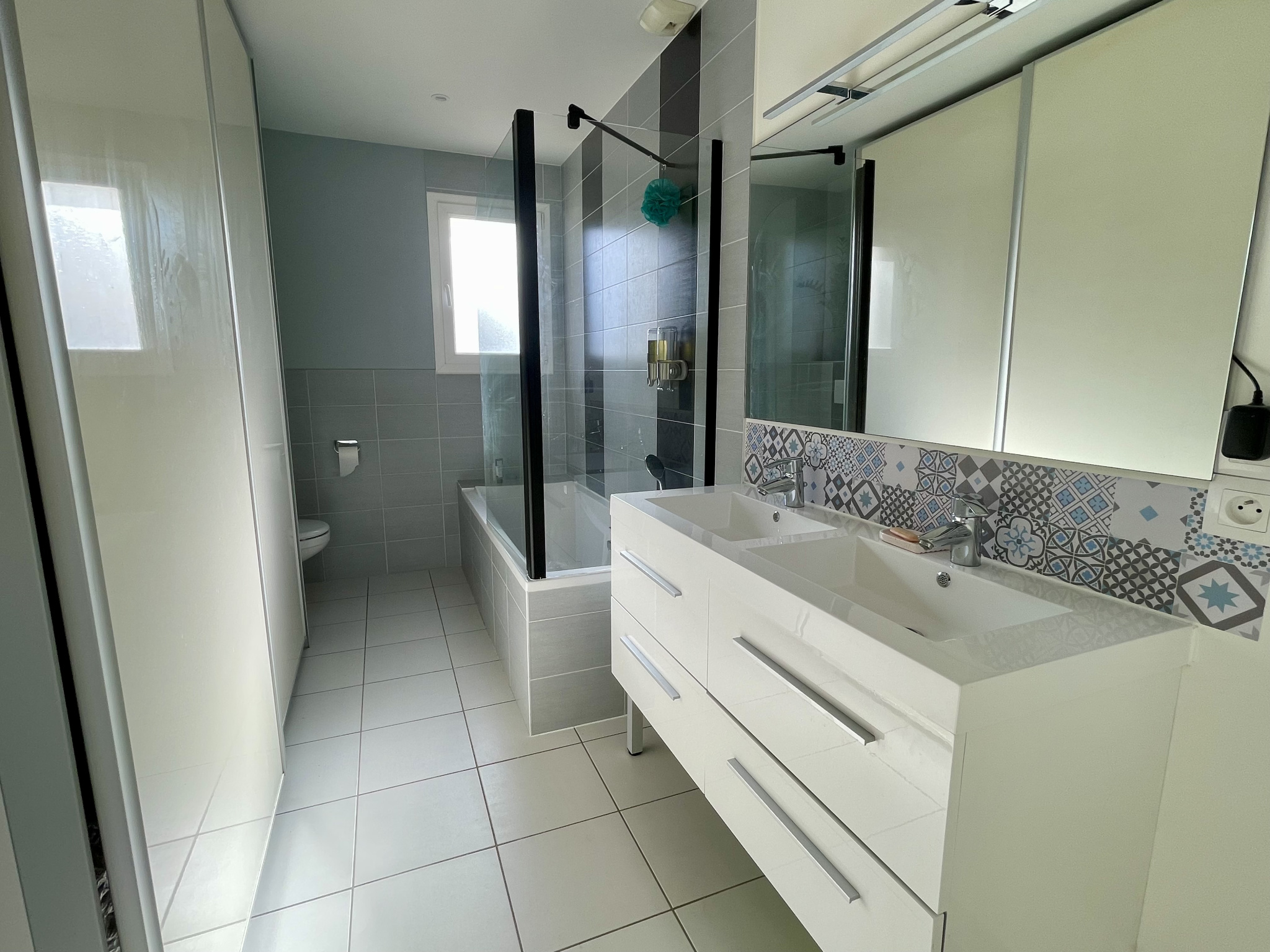 Un garage double de 28 m², ainsi que deux places de stationnement extérieures, viennent compléter ce bien.