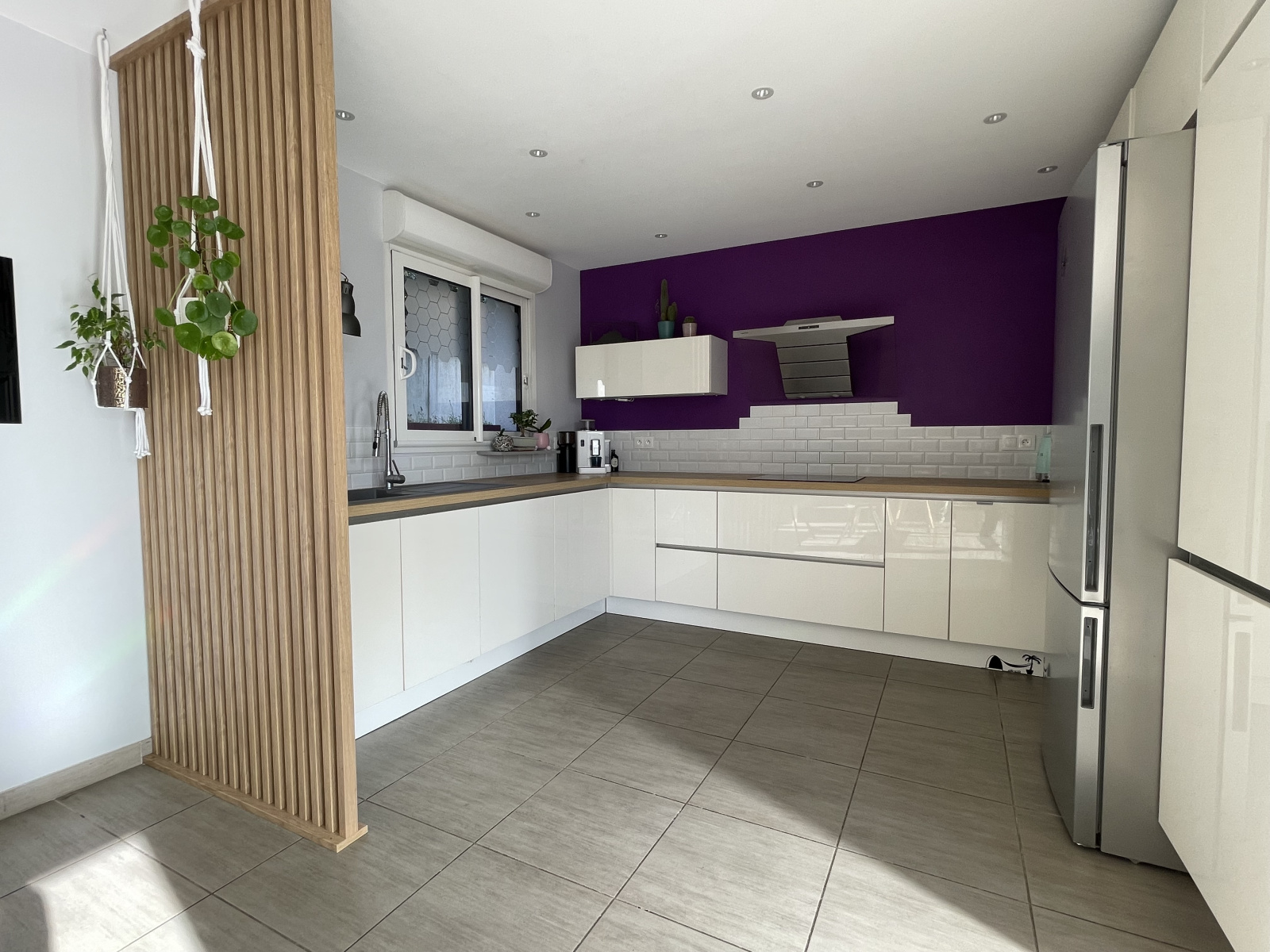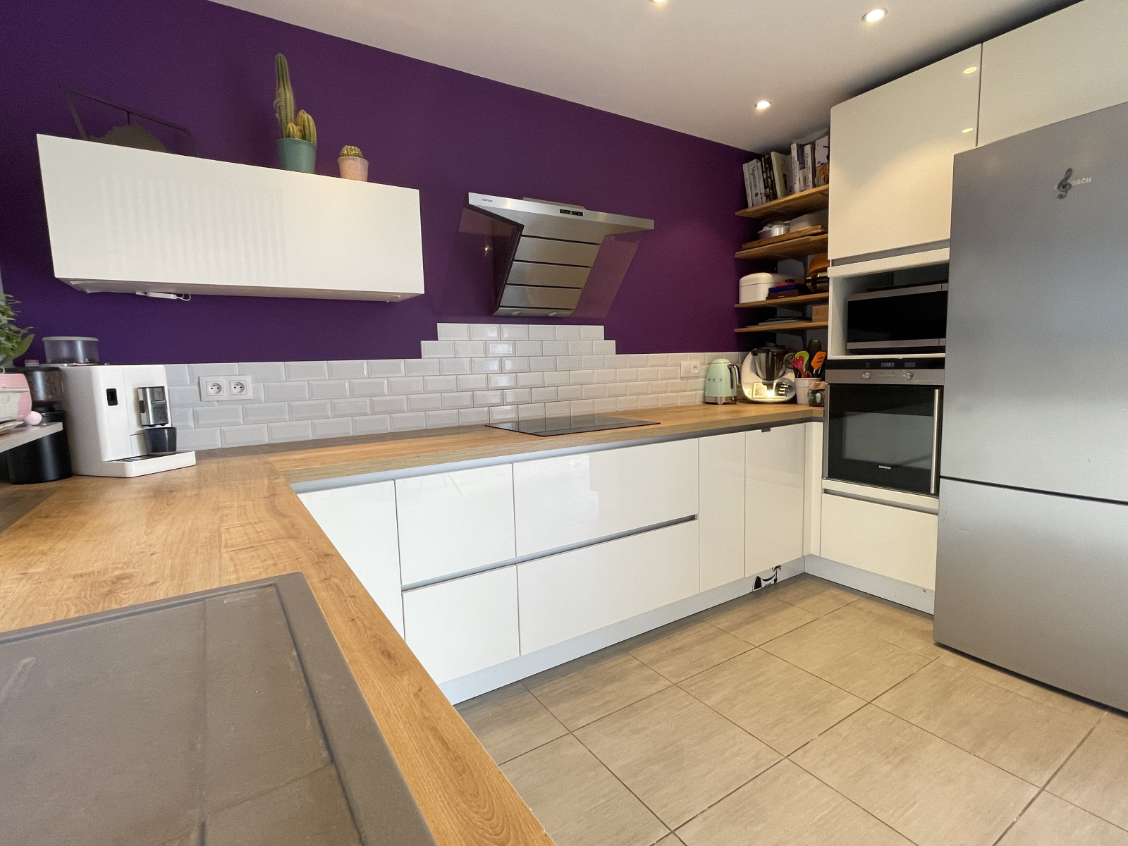 La cuisine ouverte, entièrement aménagée et équipée, complète harmonieusement l’espace de vie de 50m².