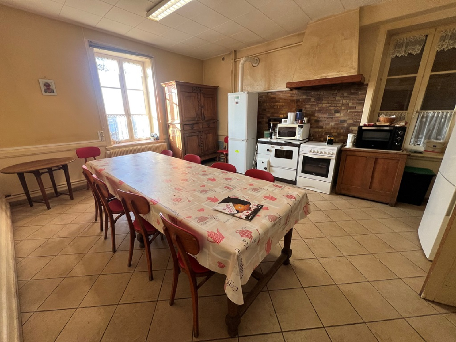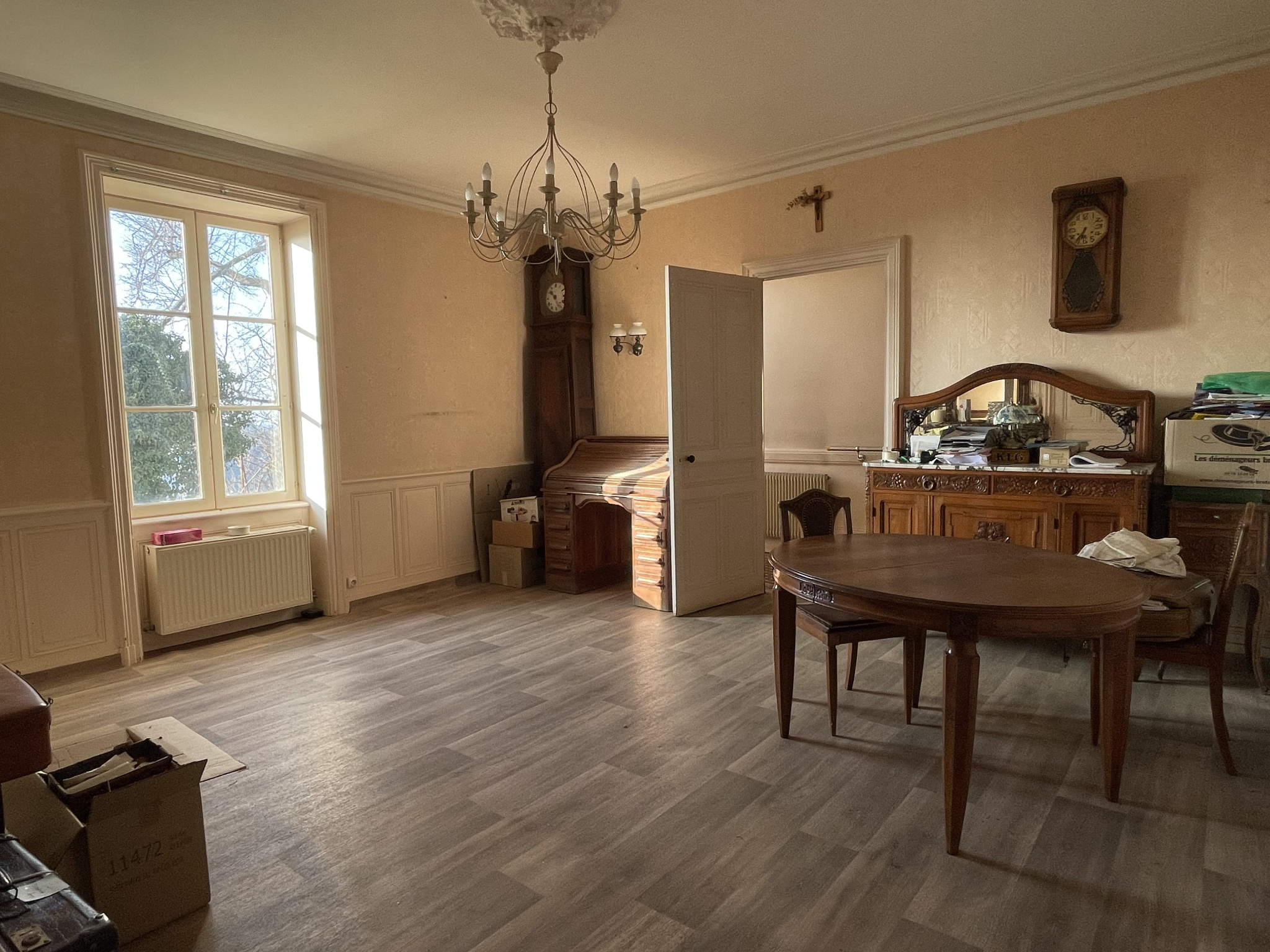 La maison de maître, construite en pierres de tailles, se distingue par ses volumes généreux. Elle s'étend sur trois niveaux et propose sept chambres spacieuses, idéales pour une grande famille ou pour aménager des espaces personnalisés (bureau, salle de jeux, etc.), deux salles d'eau, ainsi qu'un grand séjour lumineux, parfait pour recevoir. La cuisine séparée offre une belle surface, tandis qu’une partie de la maison reste à aménager selon vos envies.